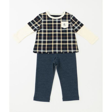 - 新品 ¥6930 組曲 kumikyoku クミキョク 2点 セットアップ カバーオール ロンパース 長袖Tシャツ カットソー 男の子 70 80cm ベビー 紺