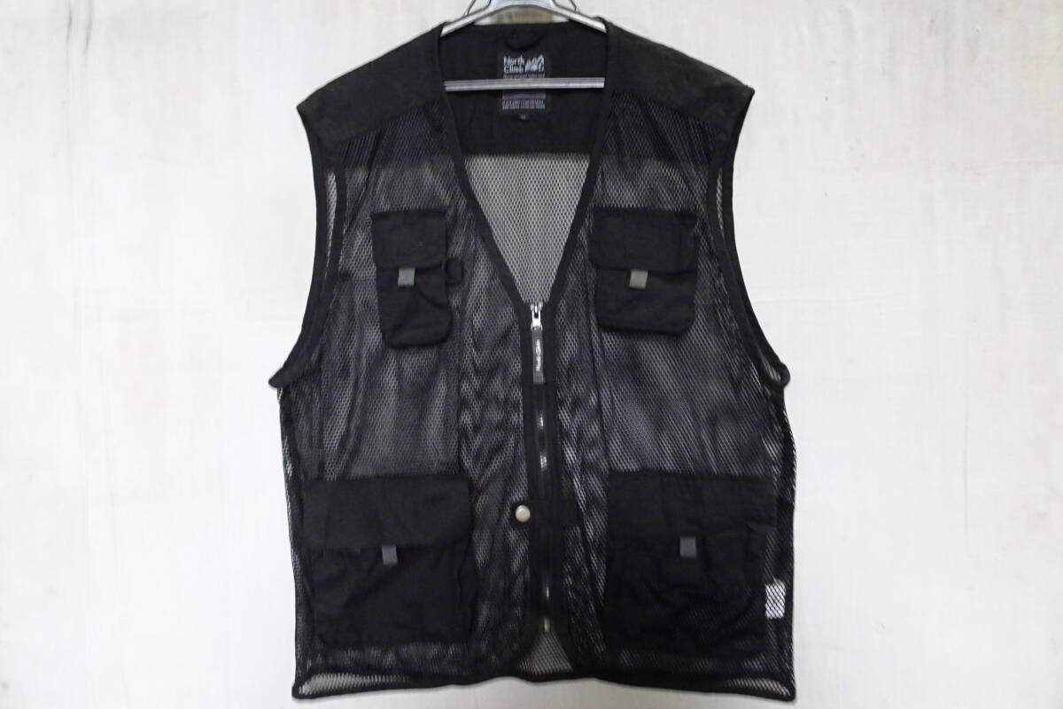 > North Climb/ノースクライム/アウトドアベスト/メッシュ素材/Vネック/前ジップアップ/フラップポケット/黒/ブラック/3Lサイズ(11/4R7)