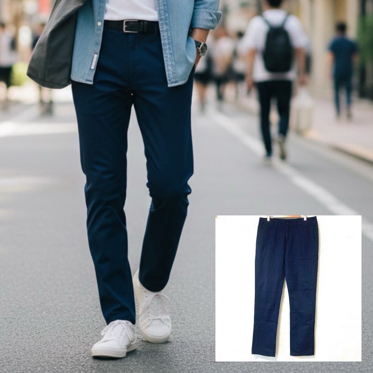 > 大人シックな1本!【HALHAM】ハルハム コットン ストレッチ カジュアル パンツ チノパン シンプル 爽やか ネイビー メンズ M/Y37480UU