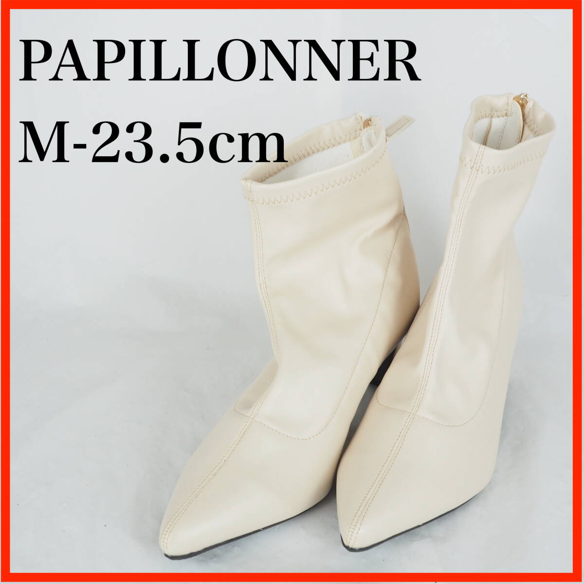 - GB0829*PAPILLONNER*パピヨネ*レディースショートブーツ*M-23.5cm*アイボリー