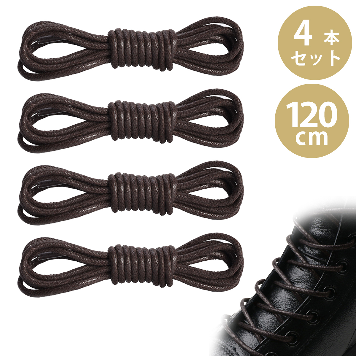 - 【2足入り】120cm 革靴 靴紐 ブーツ 紐 靴ひも ビジネスシューズ シューレース 丸紐 ワックス靴紐 6穴以上用(ダークブラウン);J5601-2ps;