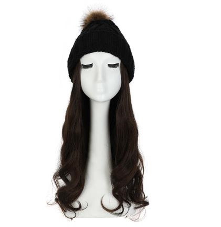 - ウィッグ付きニット帽 ニット帽/ブラック ウィッグカラー/K ロングヘアー イメチェン 髪色チェンジ コスプレ