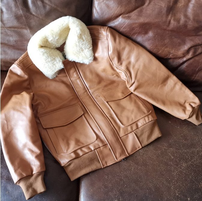 - G1 フライトジャケット メンズ 空軍 カジュアル カウハイド ウール 襟取り外し可能 羊革 耐久性 革ジャン S~3XL