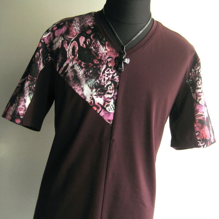 > 1.4万 新品 L トルネードマート パイソンプリント切替Tシャツ半袖 ボルドー 送料無料 サンプル 703