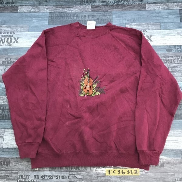 - Hanes Herway レディース USA製 コットン混 裏起毛 チェロ刺繍 ラグラントレーナー L エンジ
