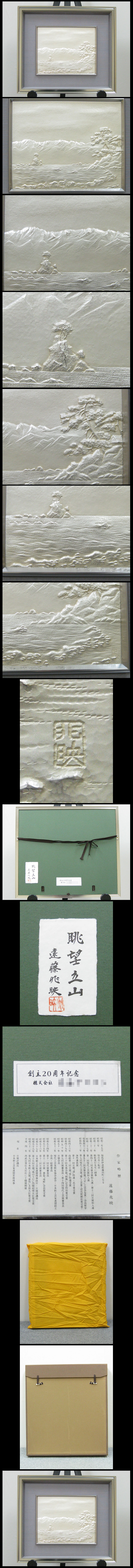 - 【心庵】額装 遠藤兆映 彫金画「眺望立山」3号 共シール 略歴 日展評議員 タトウ付 B855