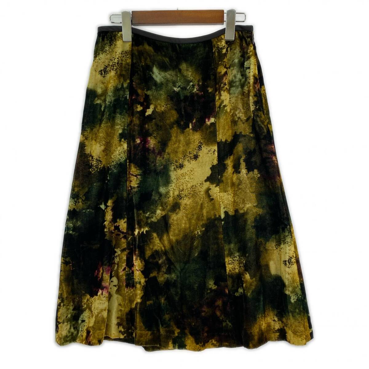 > CHRISTIAN AUJARDクリスチャン・オジャール 総柄 ベロア スカート size67-95/ブラウン系