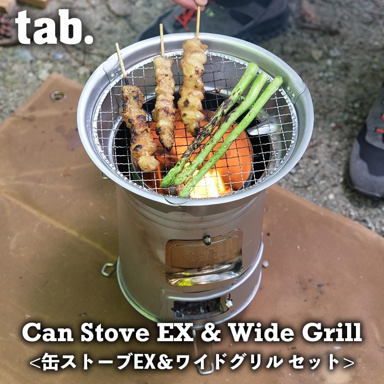 - 二次燃焼 ストーブ 焼却炉 缶ストーブEX & ワイドグリルセット 焚き火台 ウッドストーブ 薪 木炭 七輪 練炭 Tab.
