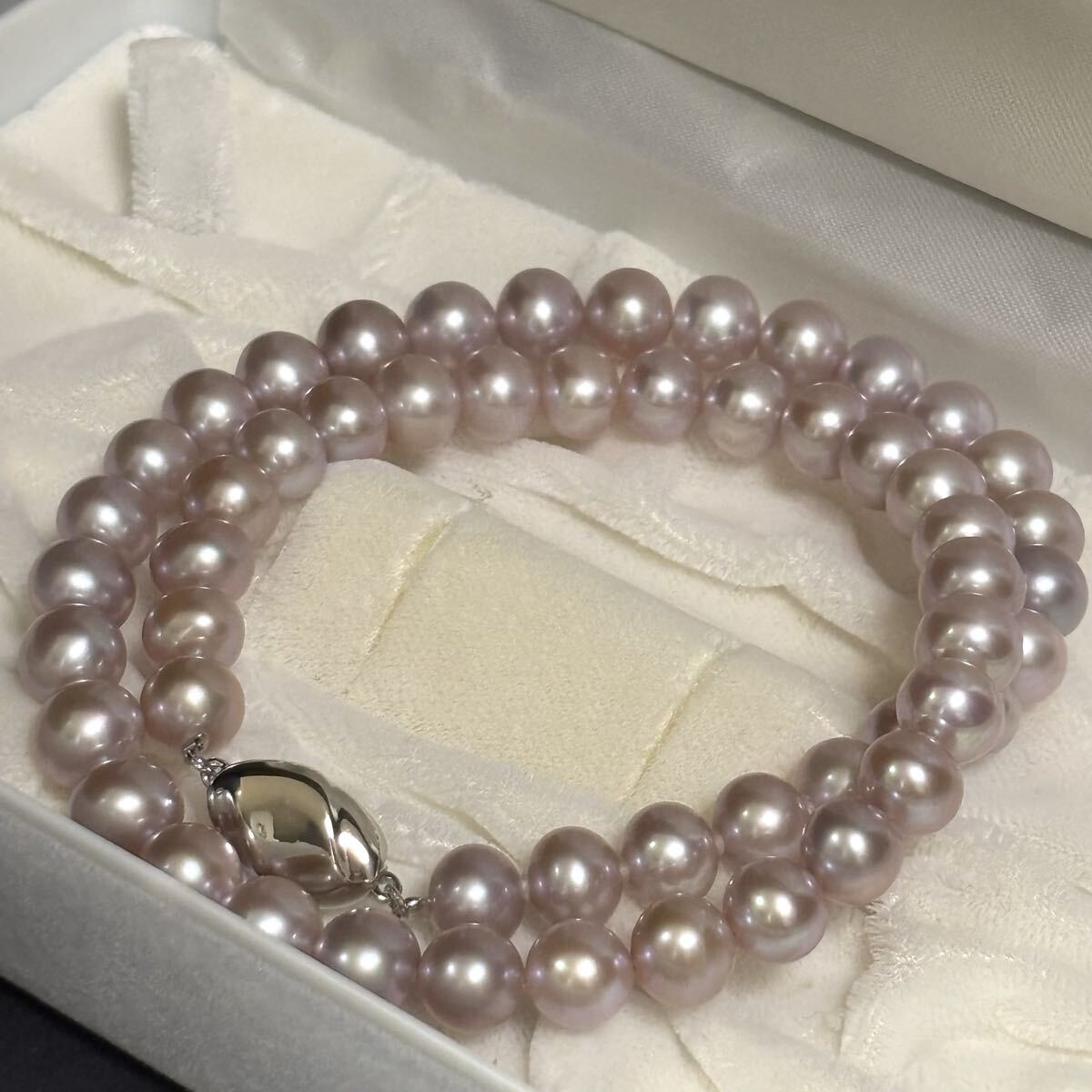 > アコヤ真珠 パール 大玉ネックレス SILVER 大きさ8.1㎜~8.2㎜ 長さ43㎝ 重さ43g pearl jewelry necklace silver刻印 あこや シルバー