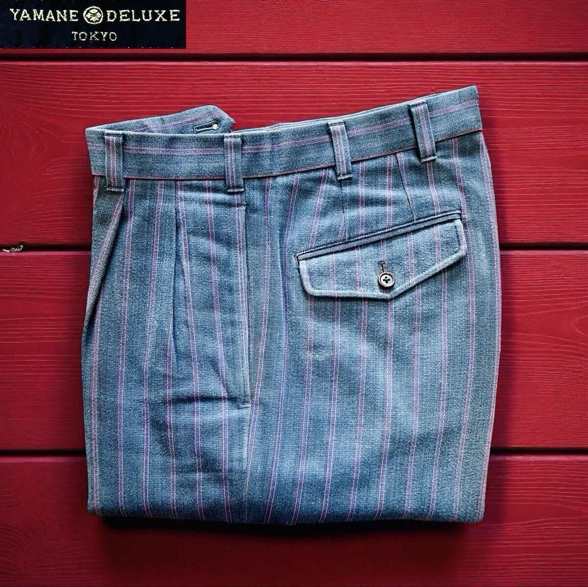 > YAMANE インディゴ染め ストライプ柄 コットンスラックス 00s vintage エヴィスジーンズ 2タック トラッド アイビー ゴルフ アメカジ 紺 29