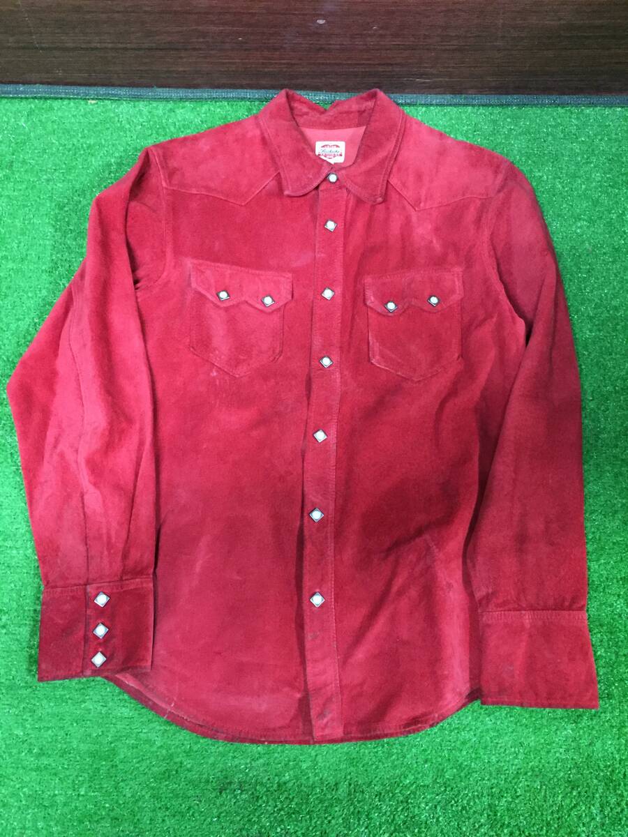 > ③ MU・CHA・CHA スエードウエスタンシャツ 長袖 豚革 ピッグスキン レッド XXLサイズ レディース メンズファッション 9-24