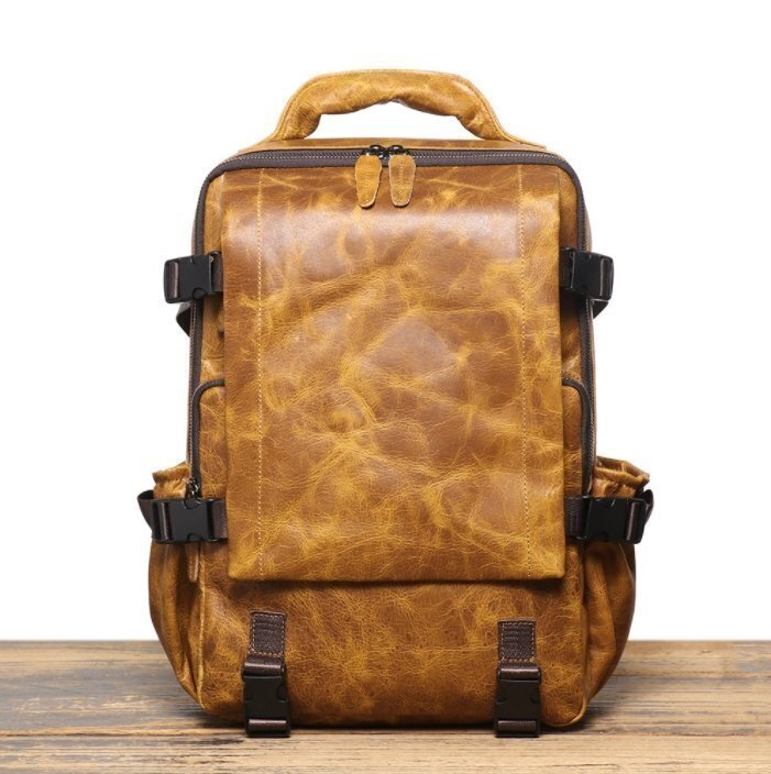 - 美品☆リュック メンズ 本革 牛革 スクエア レザー 多機能 大容量 リュックサック バックパック ビジネスリュック