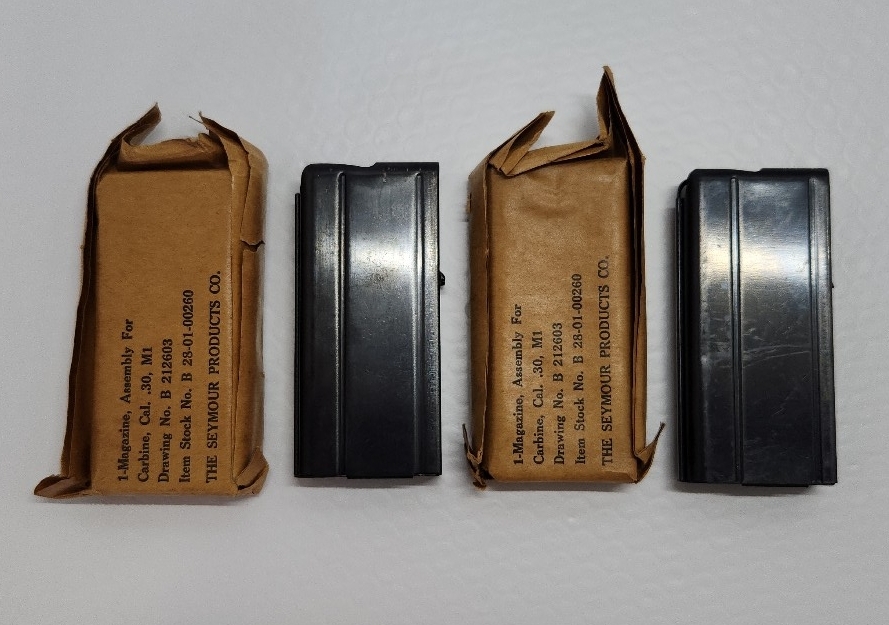 > △アメリカ軍(米軍) M1カービン 15連マガジン(油紙パッケージ付き) 2つセット デッドストック品 モデルガン 無可動 WW2