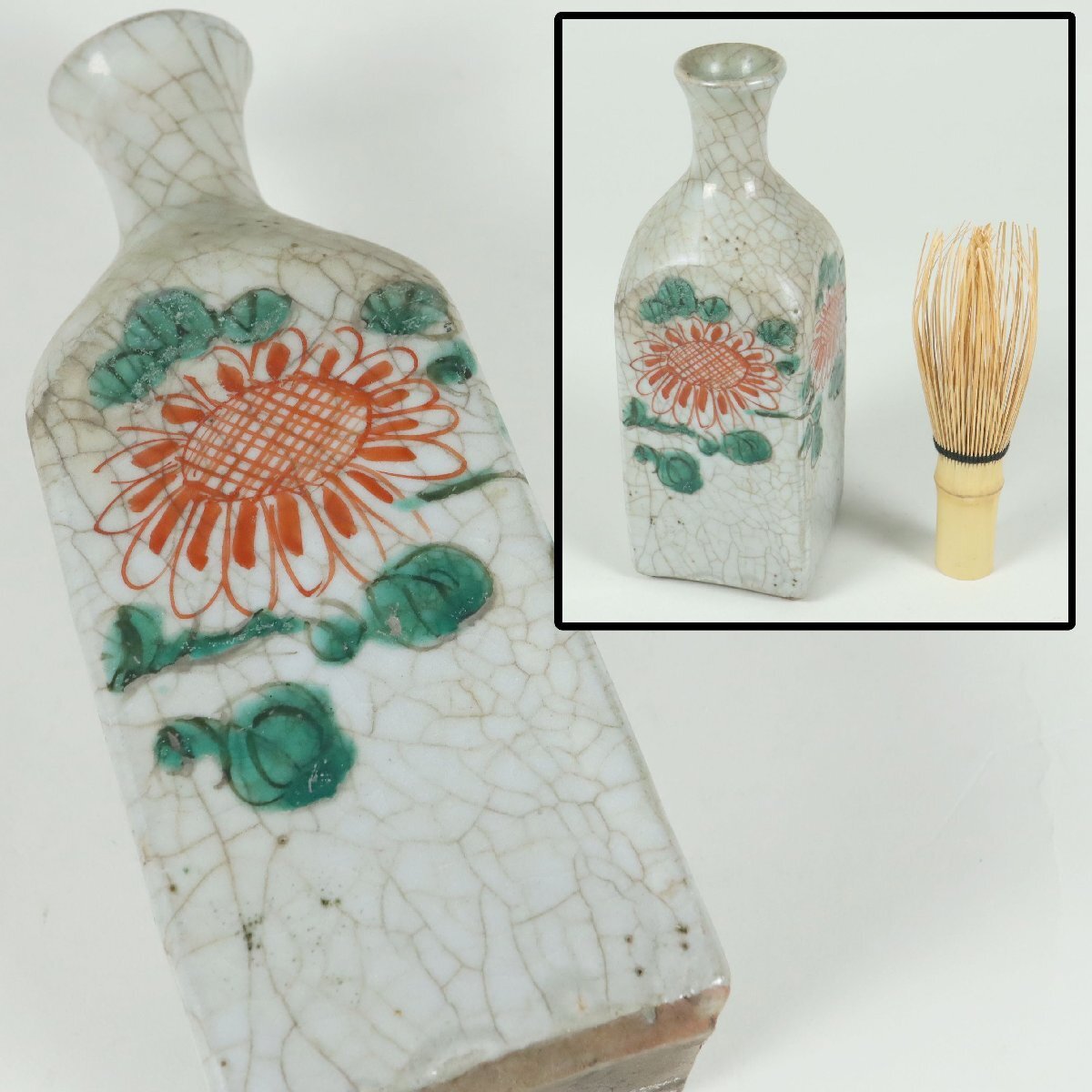 - 江戸後期 砥部焼 岩谷焼 角徳利 保命酒徳利 鞆徳利 備後 鞆の浦 酒器 陶磁器 骨董品 美術品 5129wdyHH