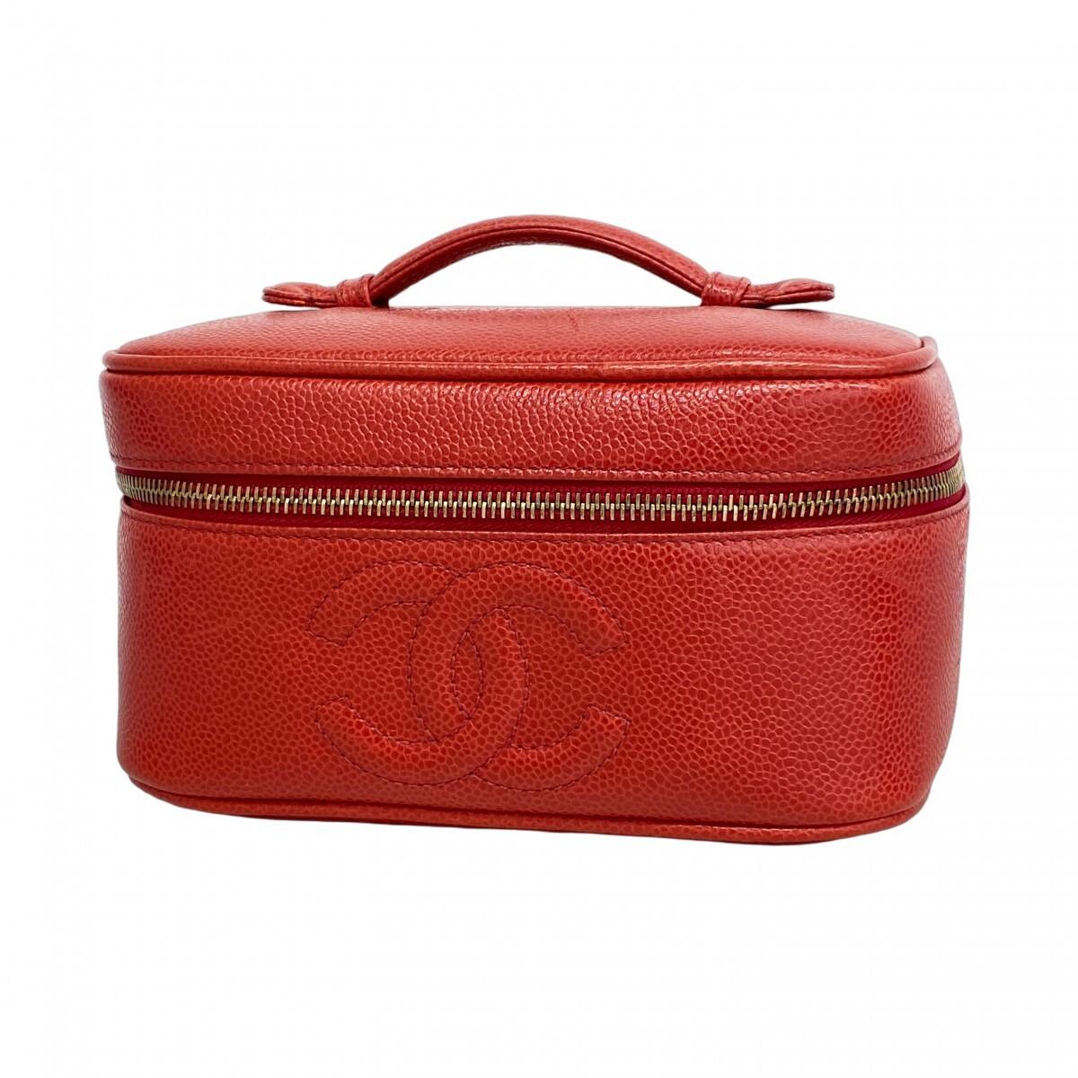> ★最終価格★SALE【5mb2296-h】シャネル バニティバッグ キャビアスキン レッド ゴールド金具【中古】レディース