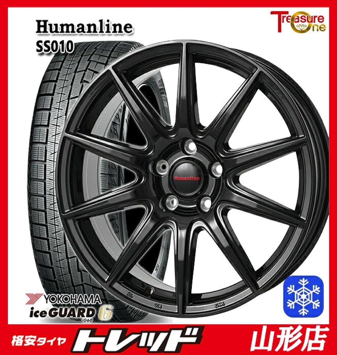 - 山形店 新品 冬タイヤ ホイールセット ヒューマンライン SS-010 17インチ 7.0j 5H114.3 +53 BK ヨコハマ アイスガード6 225/60R17 2024年製