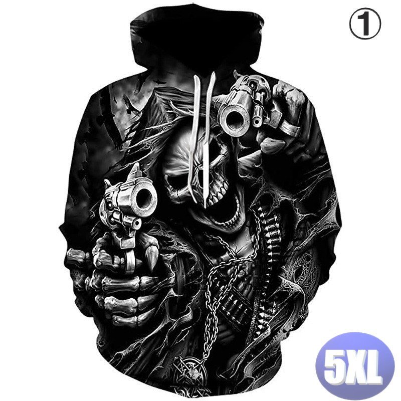 - フード付き ドクロパーカー カラー1 5XL トレーナー アウター 防寒 n716