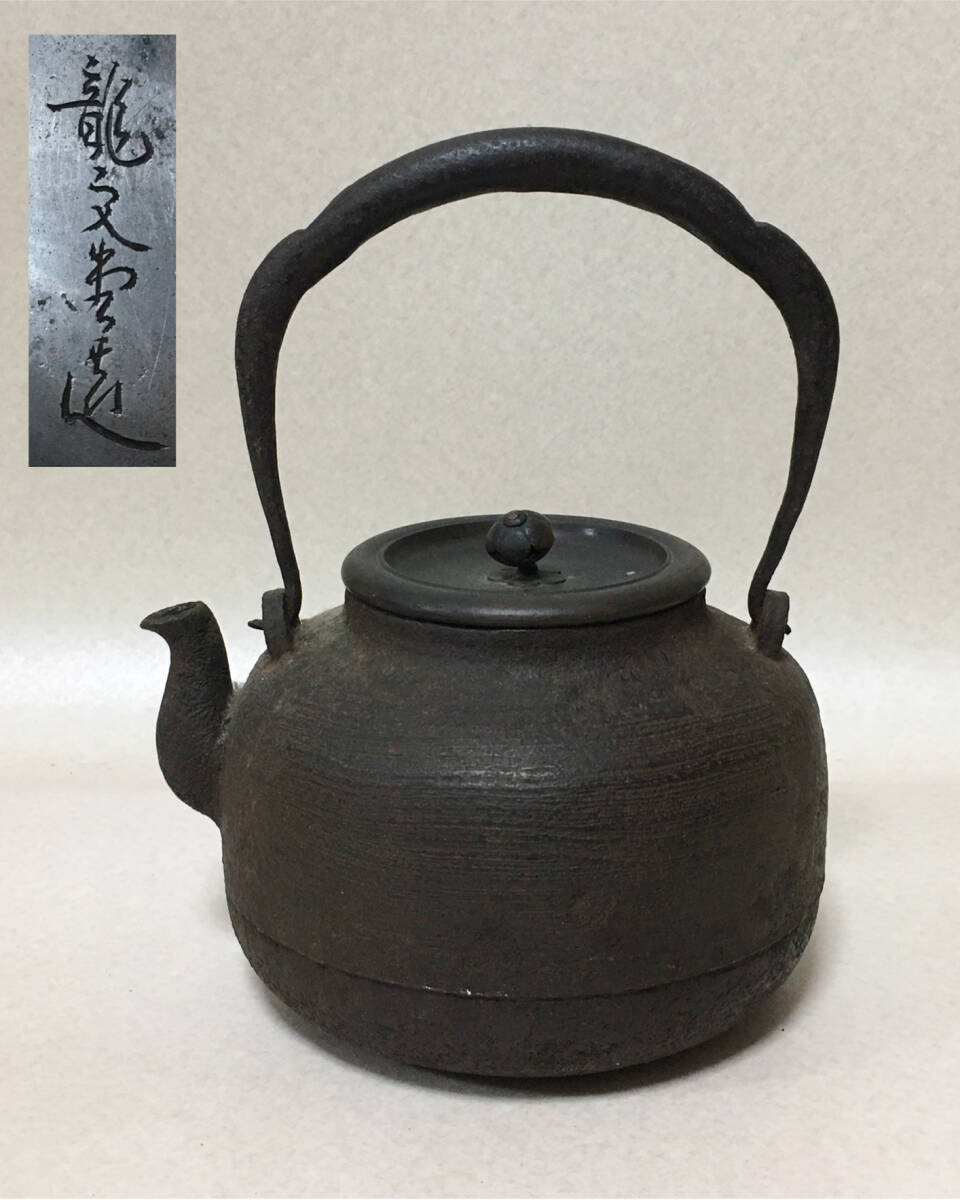 - E910 龍文堂 鉄瓶 銅蓋 湯沸し 茶道具 難あり