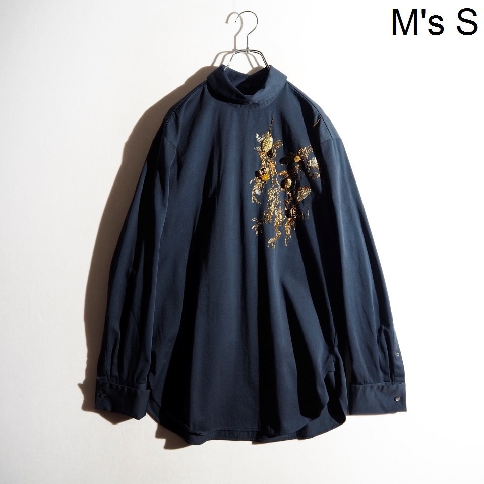 > C4724P ▼DRIES VAN NOTEN ドリスヴァンノッテン▼ 25SS ハイネック エンブロイダリーシャツ ネイビー S / 刺繍 シーズンレス rb mks