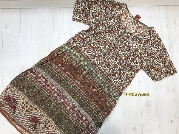 - JAGANNATH レディース ペイズリー オールボタン 半袖ワンピース ブラウン