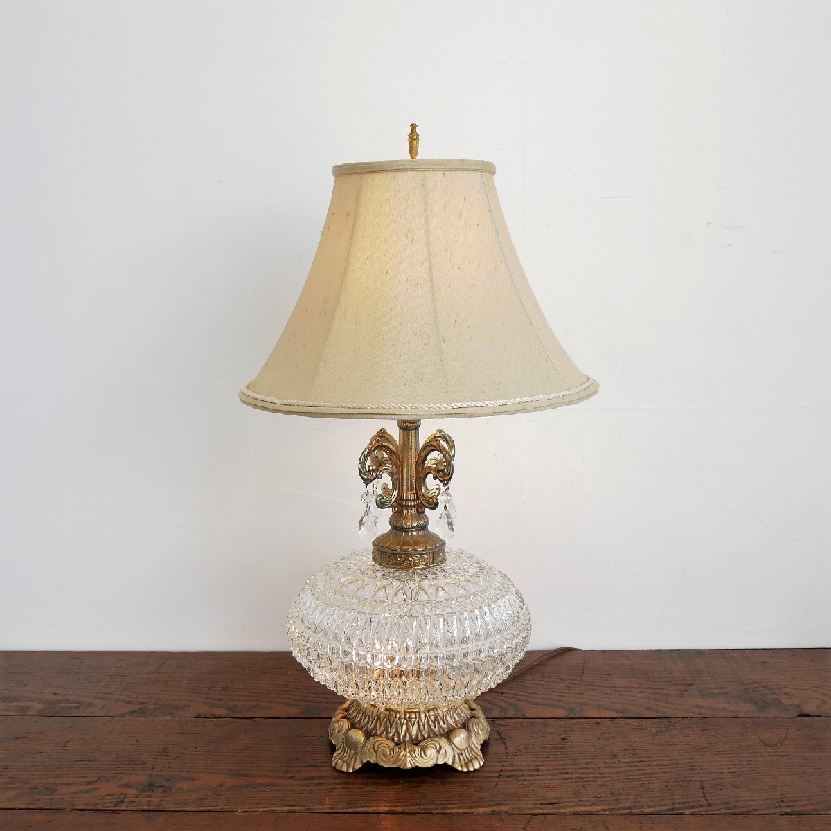 - 1970年代 クリアガラス テーブルランプ【#5186】2灯 アンティーク照明 シャンデリアパーツ付き ファブリックシェード ヴィンテージ ライト