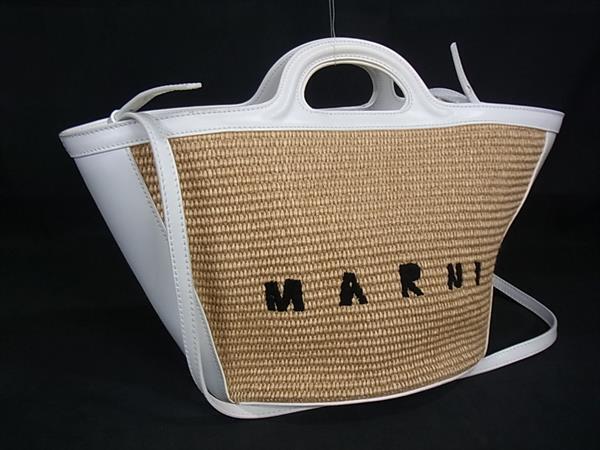 - 1円 MARNI マルニ トロピカリア ストロー×レザー 2WAY クロスボディ トート ハンドバッグ ショルダー ベージュ系×ホワイト系 FV3784