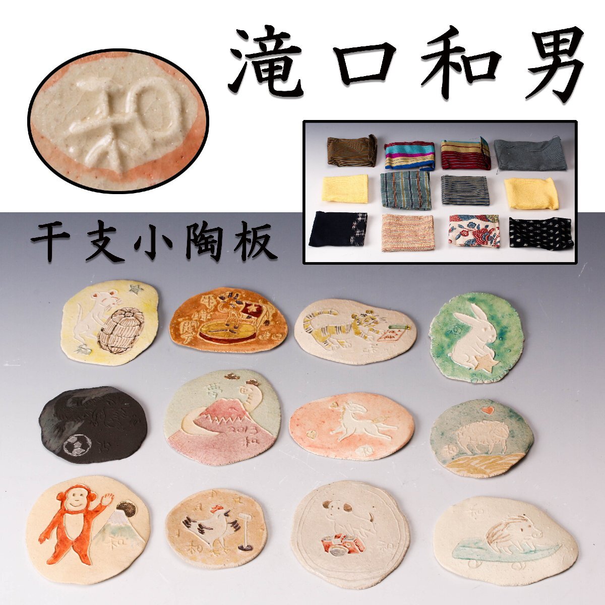 【佳香】滝口和男 干支小陶板 プレート 十二ヵ月揃 紙箱 本物保証