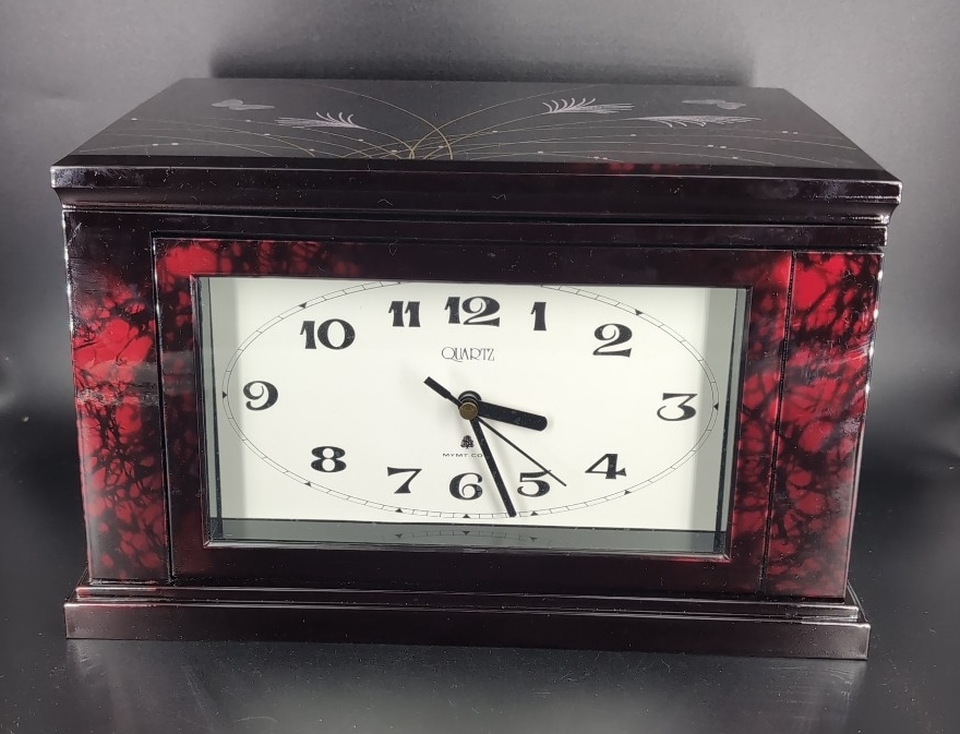 - 【当時物】 アンティーク 小物入れ 時計 【漆塗り】 動作確認済