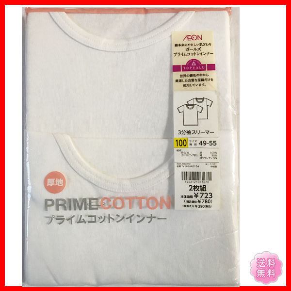 - [ 肌着] 20%引 イオン トップバリュー 女児 プライムコットンインナー 厚地( 3分袖スリーマー)< 100> ホワイト 送料無料 K-21