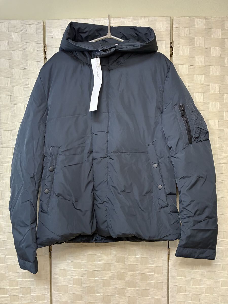 - 【新品未使用】House of Blues、ダウンジャケット、紺色ネイビー、Mサイズ相当、左肩のポケットオシャレ、ダウンだけど細く見えデザイン