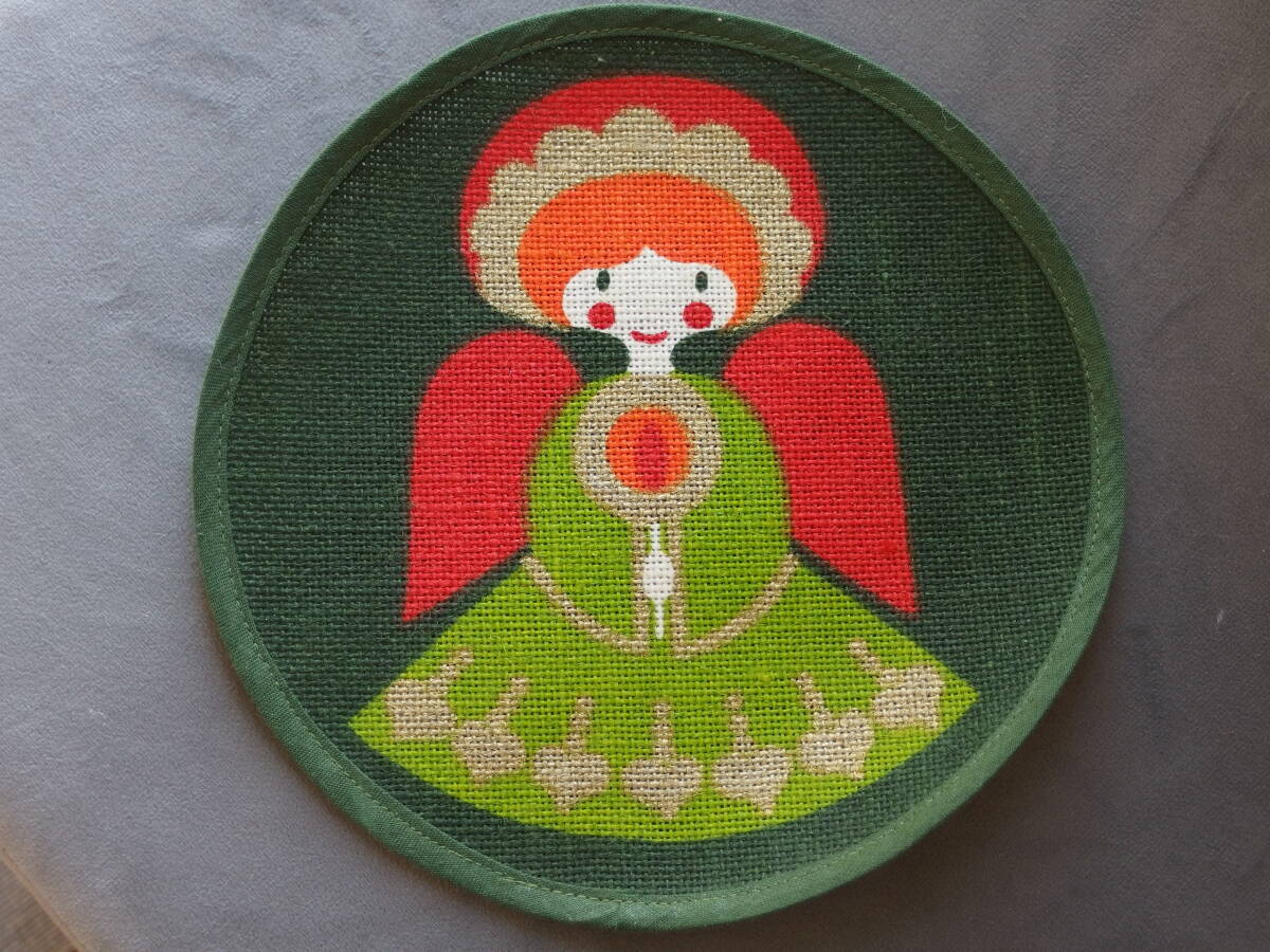 - 北欧雑貨 デンマーク Sodahl ソダール ヴィンテージ クリスマス時期用 テーブルセンター/クロス 天使 (緑,丸 , 20cm) Hans.Jurgen.Schobel