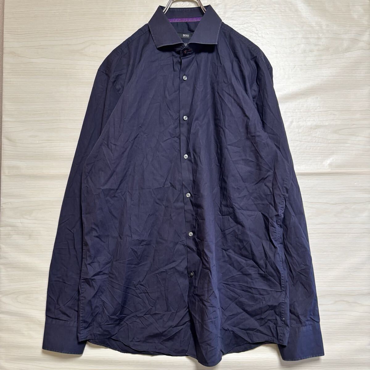 > HUGO BOSS ヒューゴボス 長袖シャツ レギュラーカラー スリムフィット イージーアイロン サイズL相当 パープメンズ トップス(41)