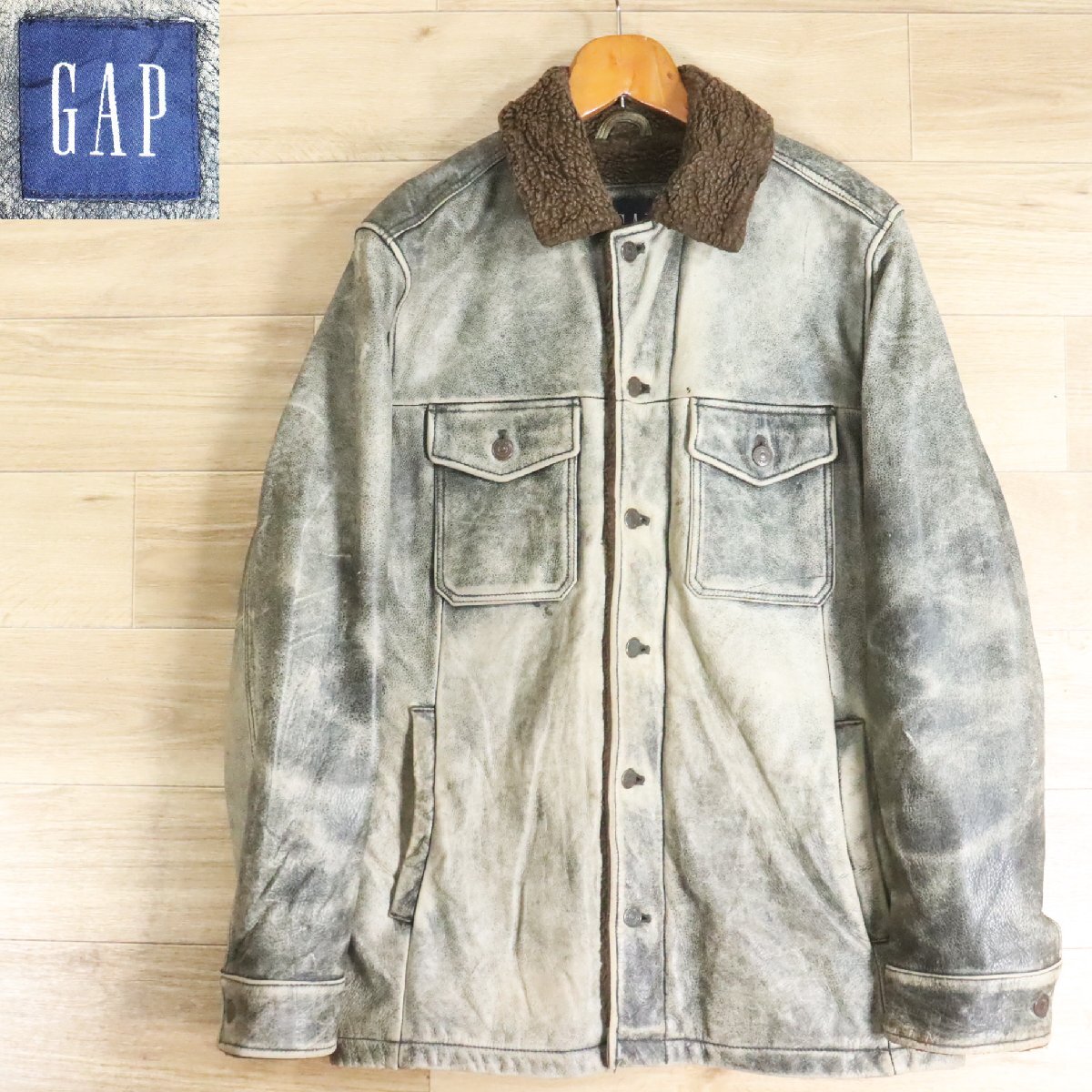 > %2K/Y6.2-10 90s~ OLD GAP オールドギャップ レザーカーコート 本革 レザージャケット レザーコート 革ジャン 皮ジャン S