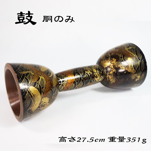 > ◇雅◇ 時代 和楽器 漆塗蒔絵 金彩 鼓 胴のみ 高25.7cm/351g 小鼓 鼓胴 和太鼓 唐物骨董 /HK.25.9 [A175] OV