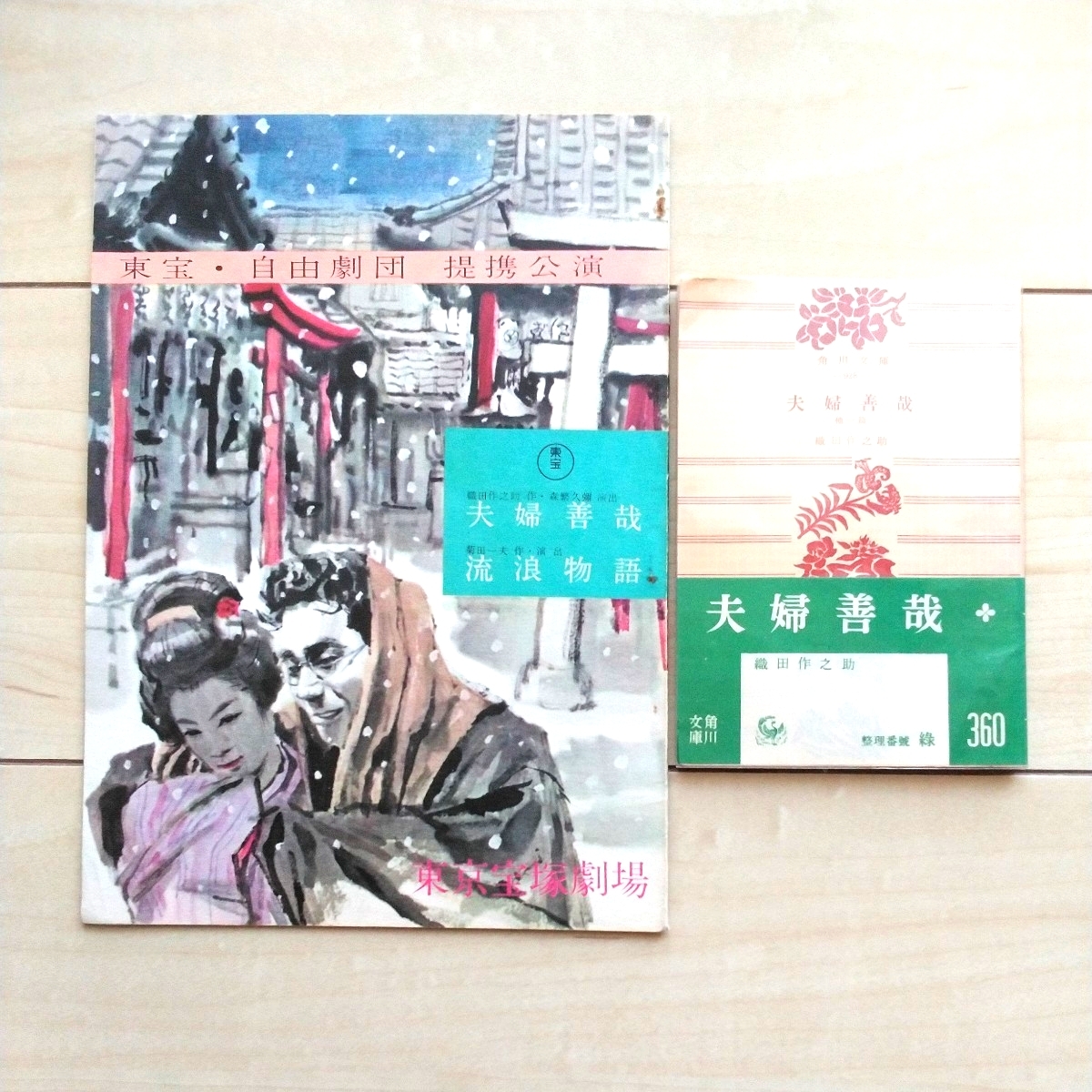 - ■『夫婦善哉/流浪物語』東京宝塚劇場舞台Pamphlet1冊及び『夫婦善哉(他一篇)』織田作之助著・角川文庫昭和29年初版緑帯2点一括。