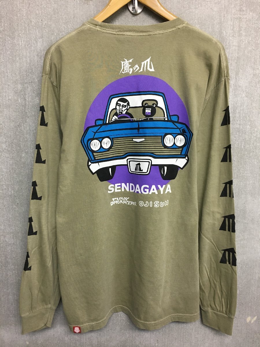 > ◆PUNK DRUNKERS パンクドランカーズ 鷹の爪 キャラクタープリント ロンT ロングスリーブ 長袖 Tシャツ カーキ系 サイズL