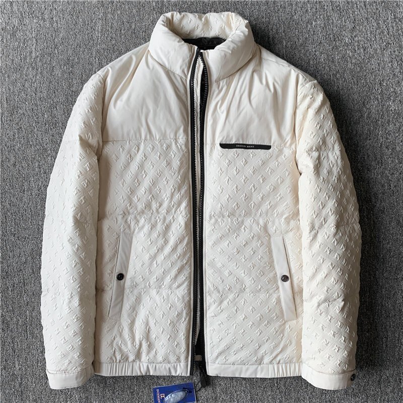- 新品 DCKMANY 上品 メンズダウンジャケット 軽量 暖かい ダウン90% 超防寒 立ち襟 防風 厚 エンボス加工 アウター ホワイト C9817-3XL