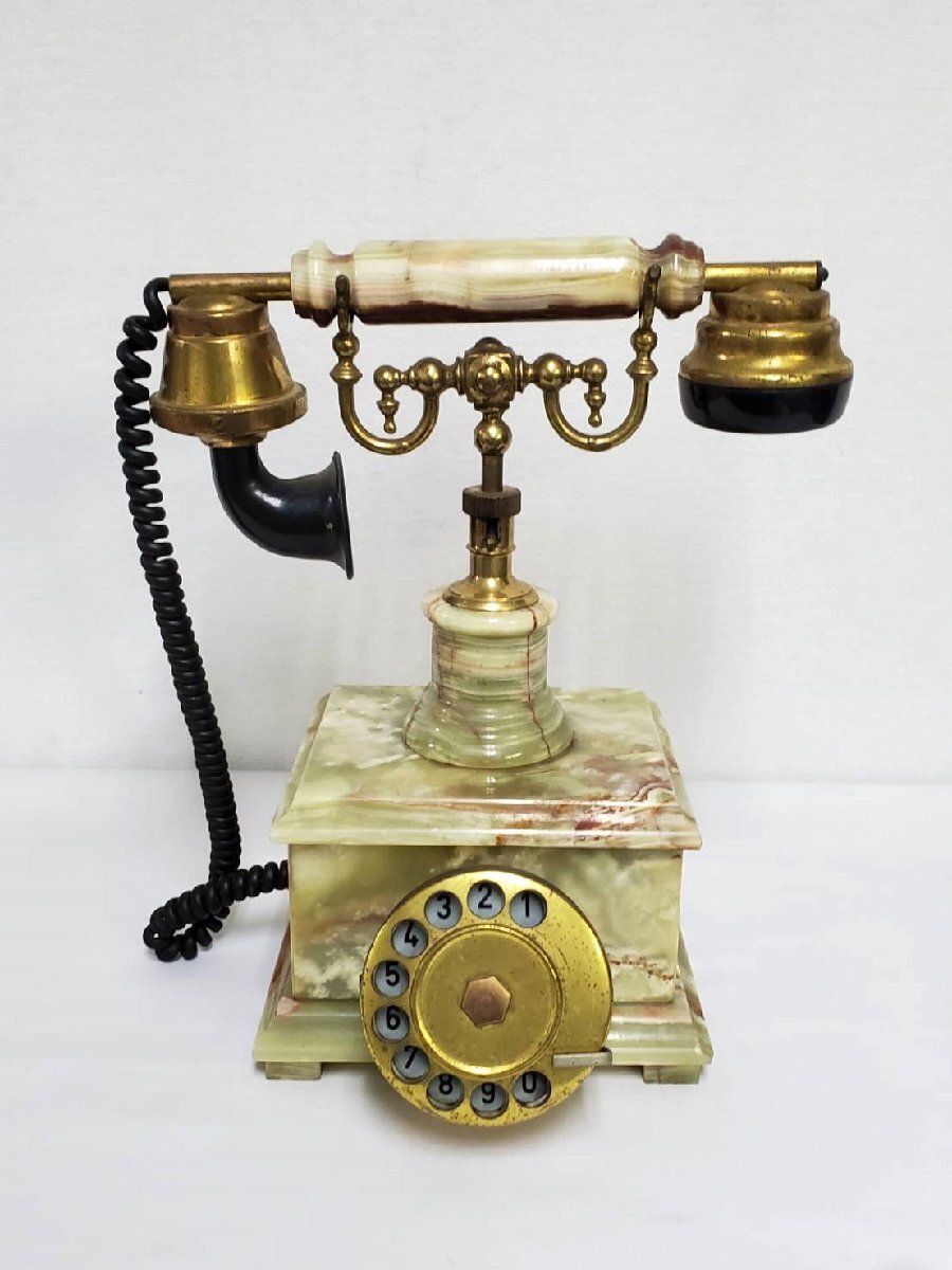 ▽【インテリアとして】 アンティーク 電話機 レトロ 置物 小道具 (電話としての使用不可) 中古▽010381