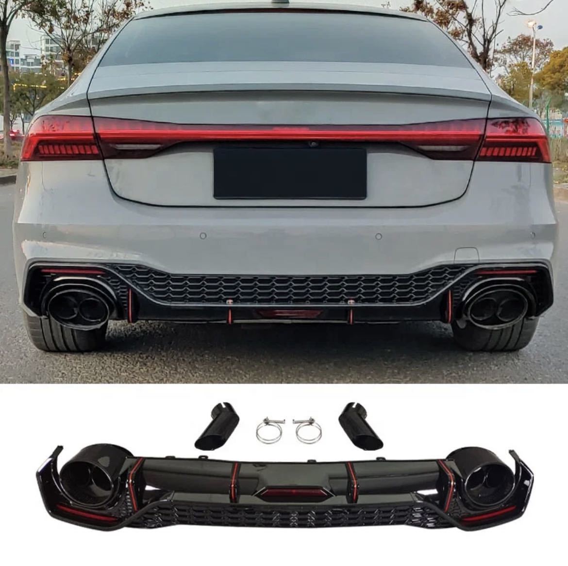 - ★NEW★ アウディ A7 RS7 仕様 ディフューザー マフラー エアロ ルック カスタム Sライン RS7 40 45 55 TFSI クワトロ TDI C8 2019-up S7