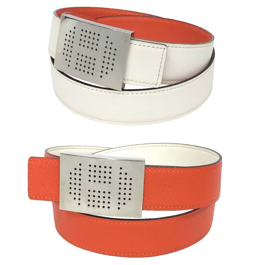 - 送料無料 セール HERMES エルメス レザー ベルト 85サイズ リバーシブル 白 オレンジ aq9205