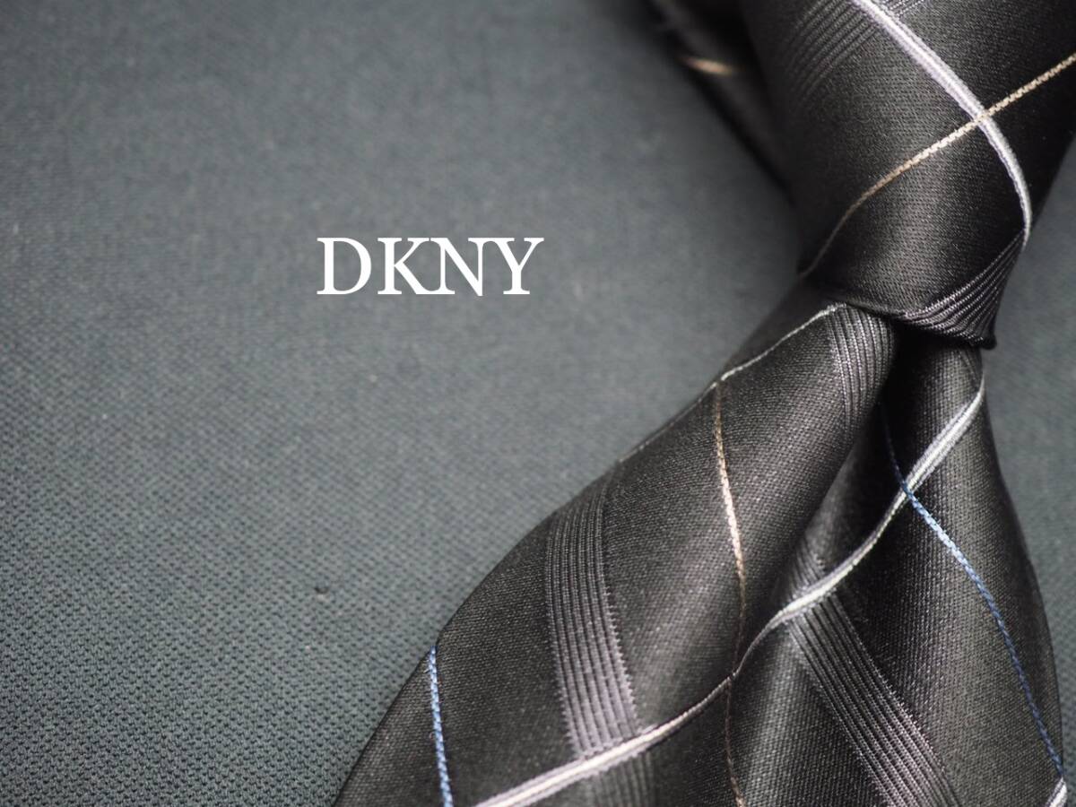 - 美品【DKNY ダナキャラン ニューヨーク】 G1042 USA ブラック系 SILK ブランド ネクタイ 古着 良品 転売 仕入