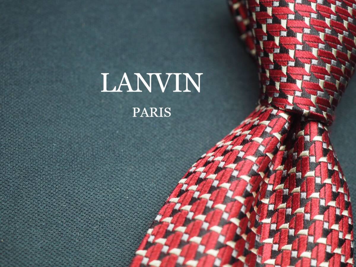 - 美品【LANVIN ランバン】 G1074 赤黒系 SILK ブランド ネクタイ 古着 良品 転売 仕入