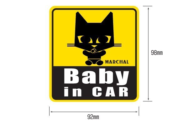 > MARCHAL 直営・即納! マーシャル ステッカー Baby in CAR 幅92mm×高さ98mm バイク 旧車 スマホ 猫 デカール 7014