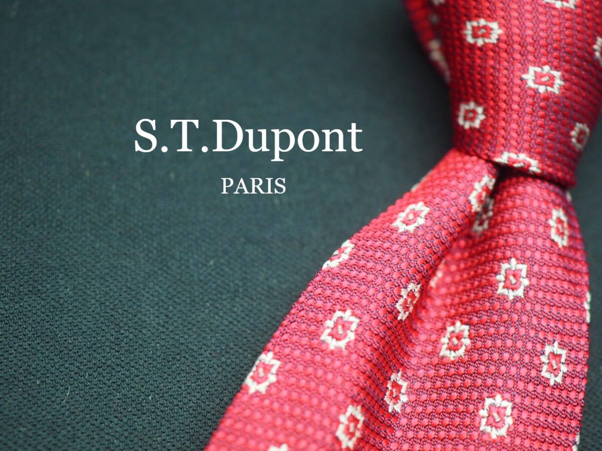 - 美品【S.T.Dupont デュポン】 G1102 赤系 SILK ブランド ネクタイ 古着 良品 転売 仕入