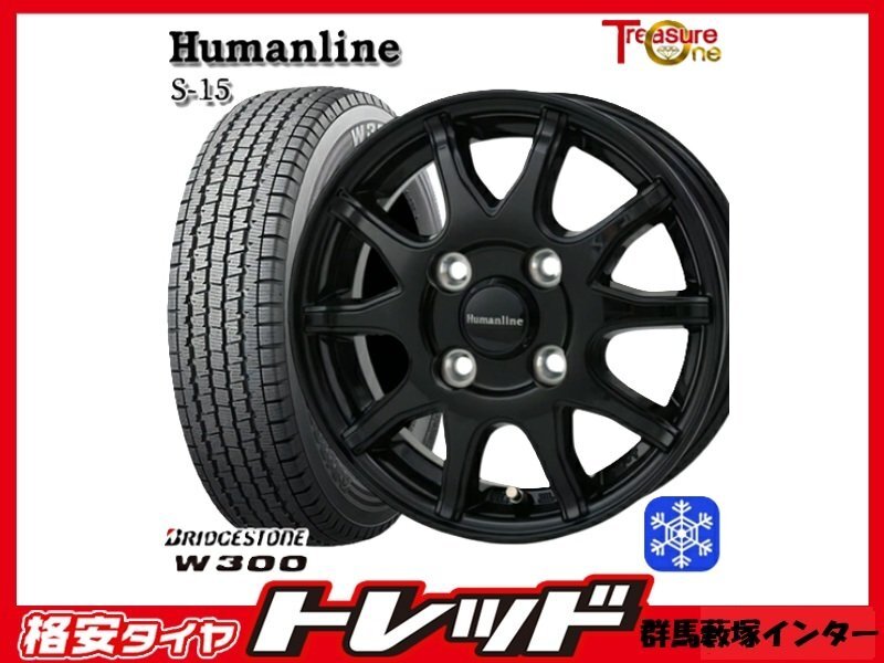 - 送料無料 群馬藪塚 新品冬タイヤアルミセット S-15 12インチ 4.0J PCD100 4H +42 ブリヂストン W300 145/80R12 80/78N 2024~25年製