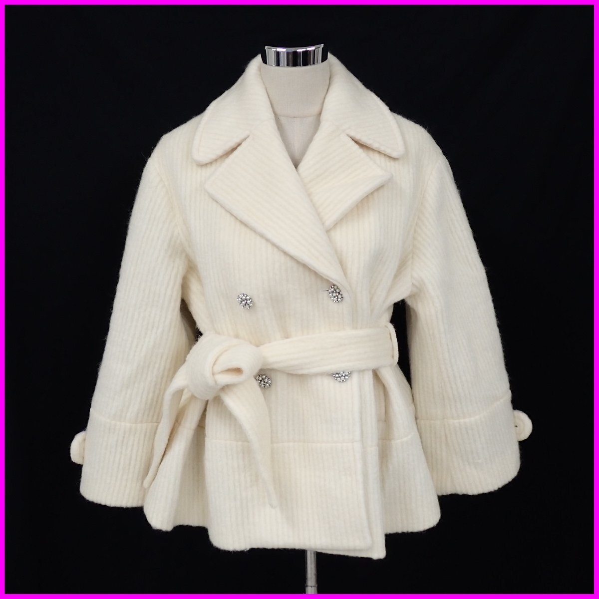 - ★未使用 Her lip to/ハーリップトゥ ショートコート レディースS/アイボリー/ウール/ビジューボタン/1224307096/ベルト付き&2134800005
