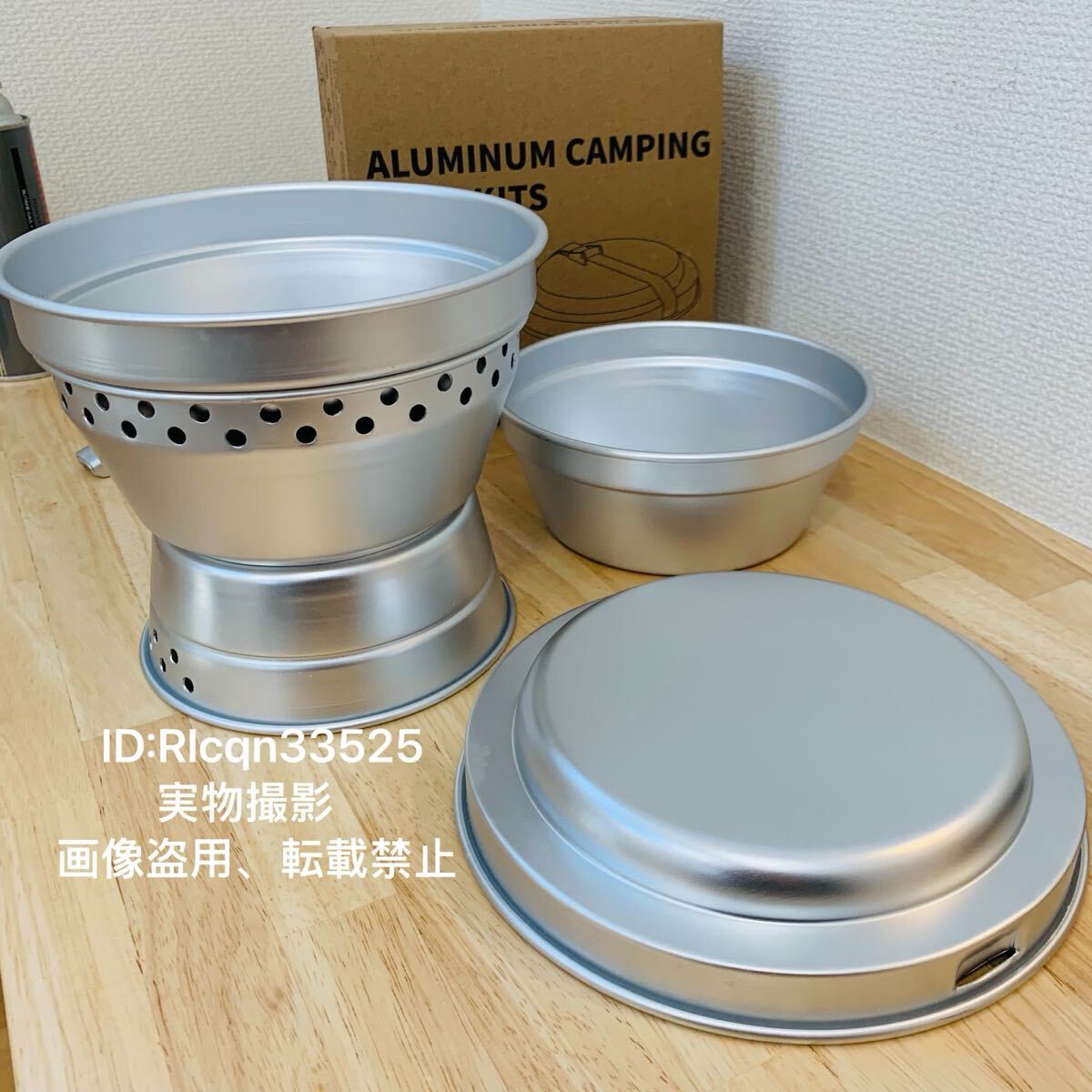 - アウトドア アルミ製 アルコールストーブセット クッカー&プレート付 調理用 キャンプ 収納セイズ19x8cm コンパクト 炊飯器具セット