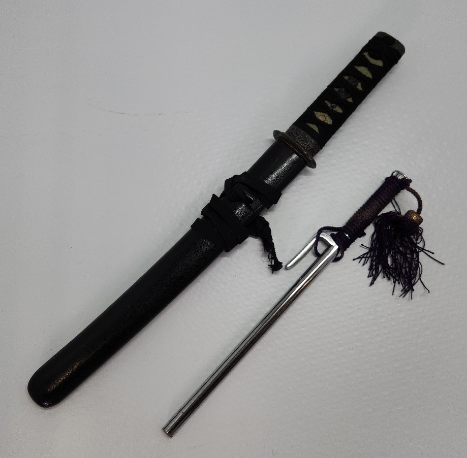 - △模造刀(鋳物) 十手 & 小太刀(短刀・脇差) 刀剣 武具 小道具 レプリカ 2点セット