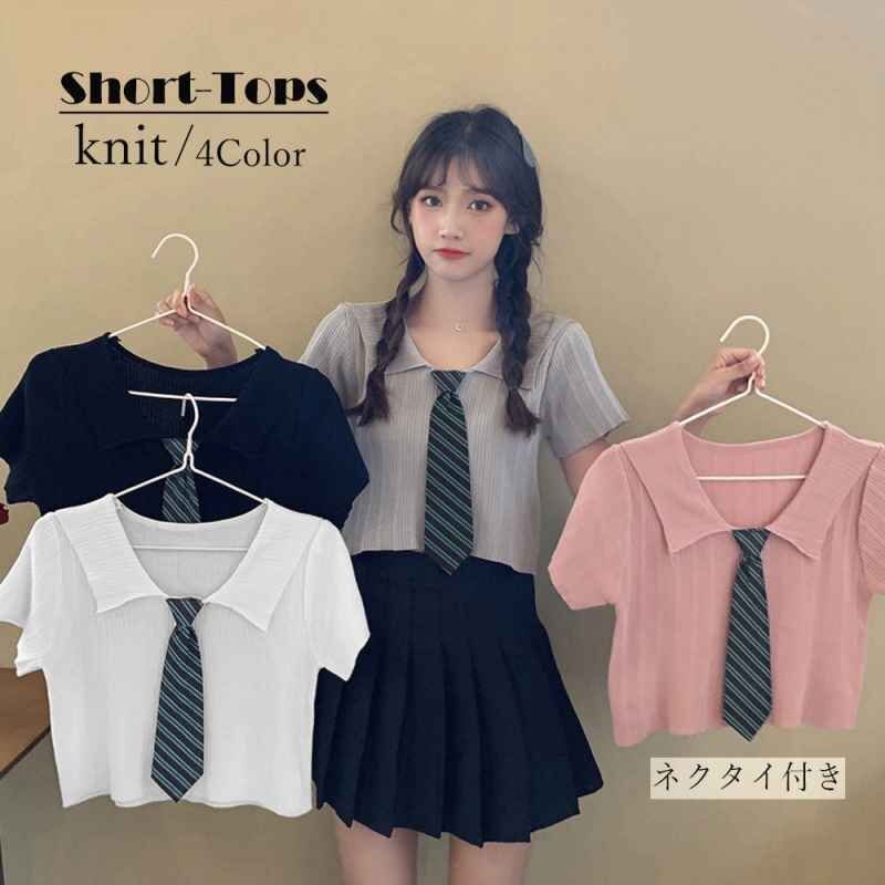 - リブニット ショート丈 へそ出し 半袖 フリー ブラック