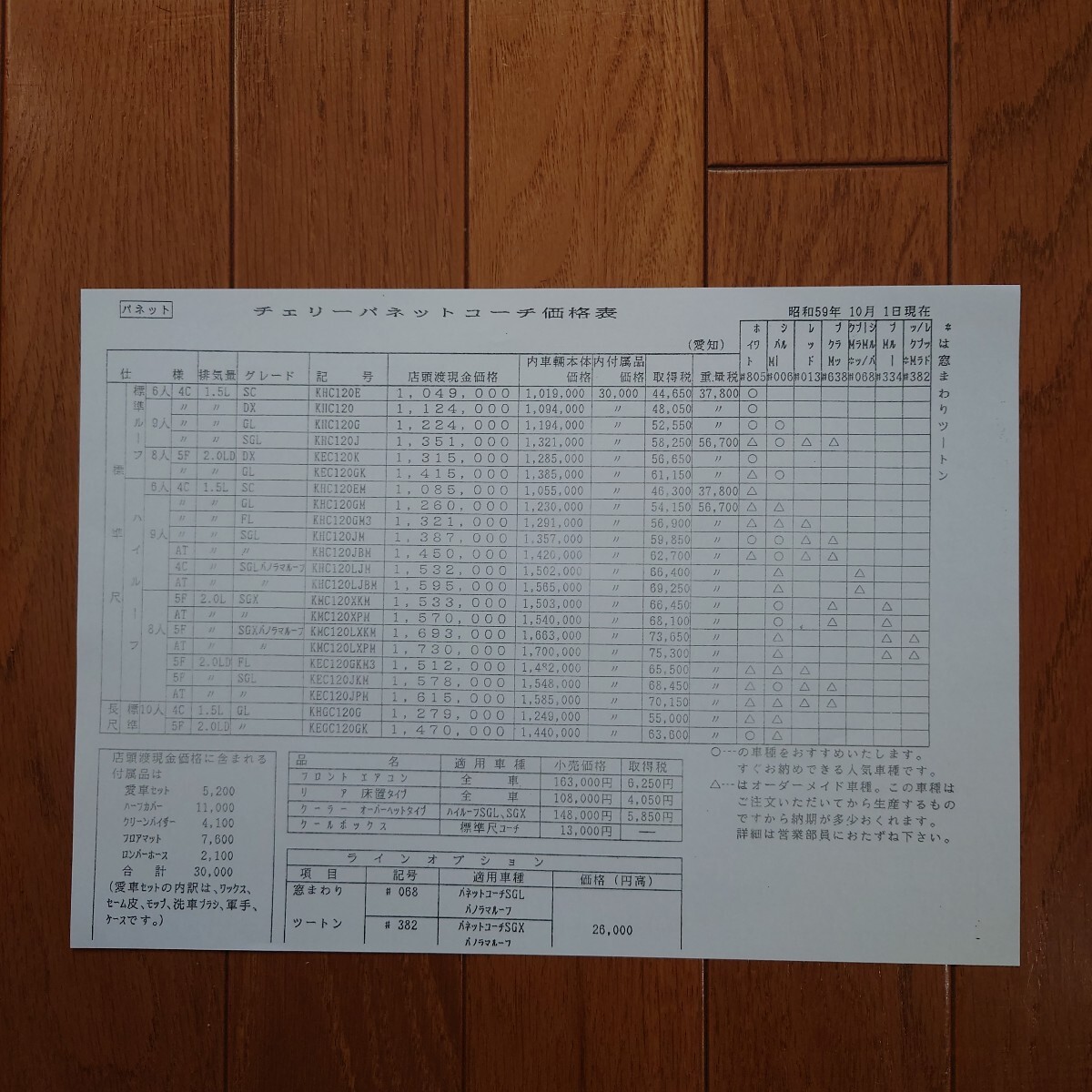 - A4横両面・昭和59年10月・C120・チェリーバネット コーチ・車両価格表 カタログ 無し NISSAN CHERRY VANETTE COACH